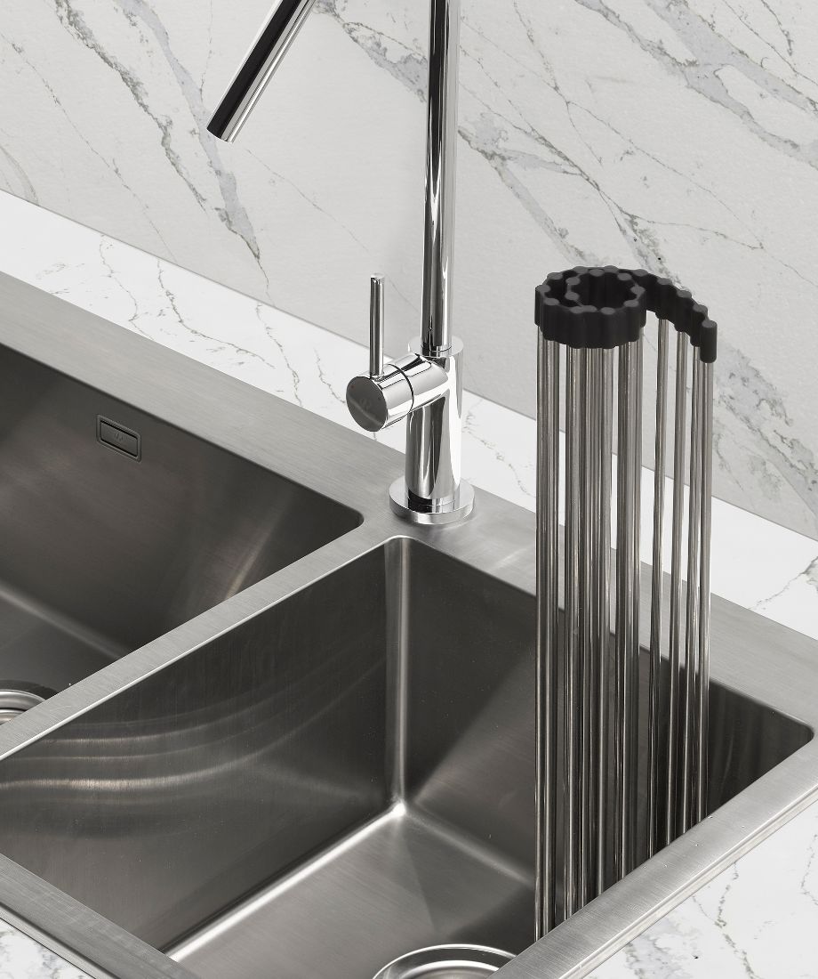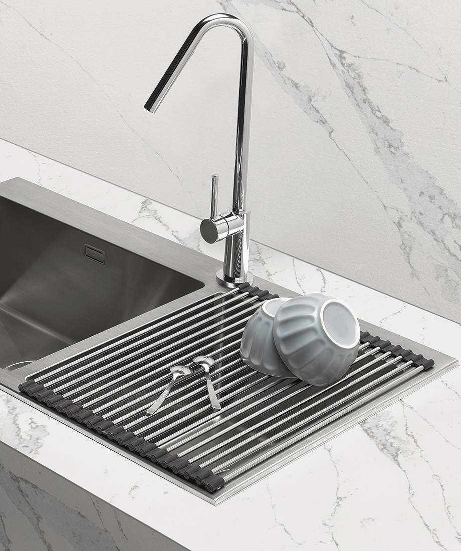 – Escurrridor enrollable multiusos fabricado en acero inoxidable AISI 304
