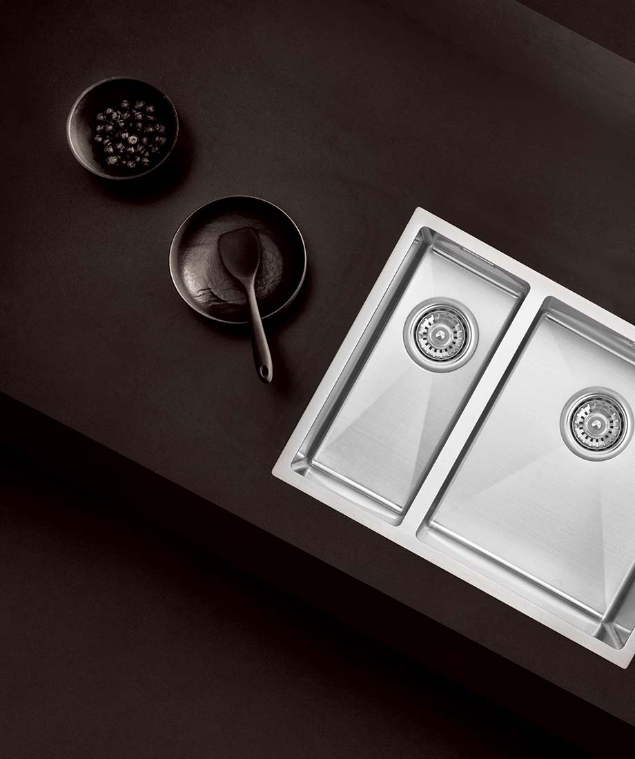– Fregadero de dos cubetas de acero inoxidable AISI 304 18/10