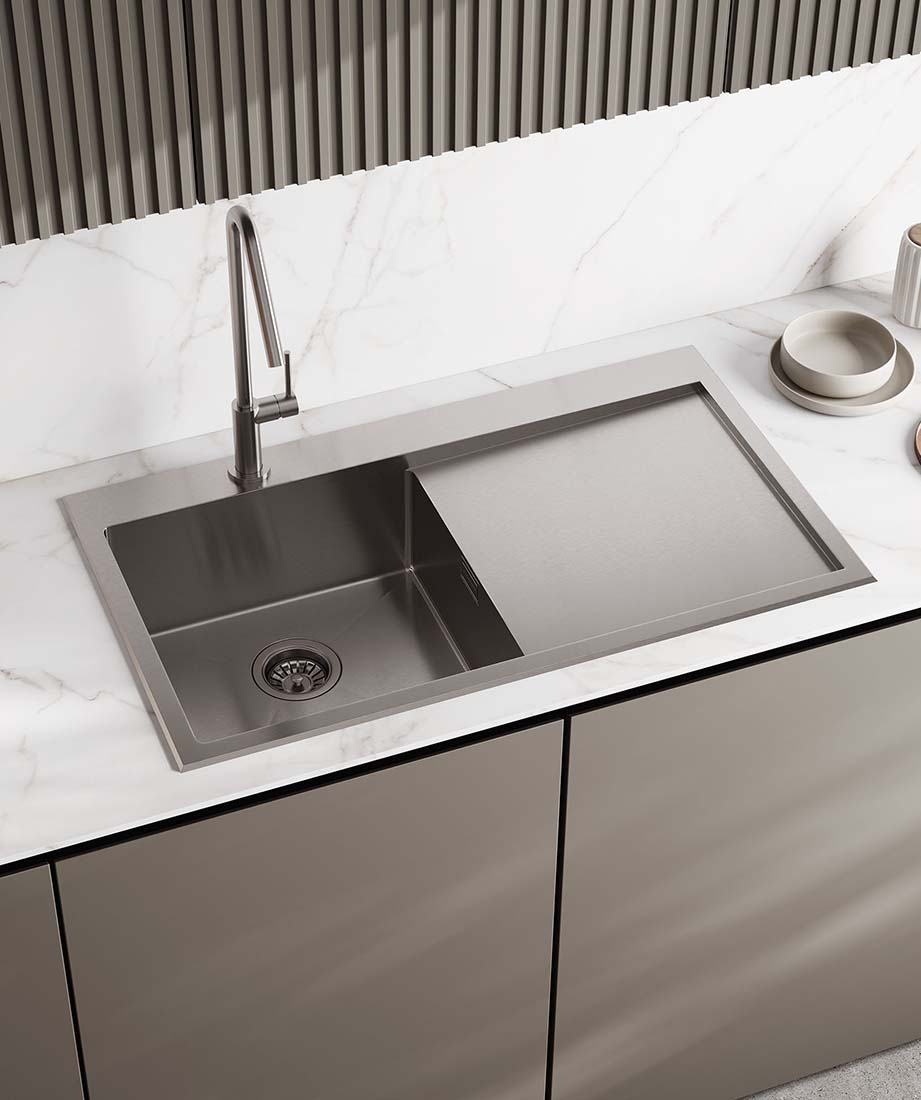 – Fregadero de una cubeta con escurridor derecha de acero inoxidable AISI 304 18/10