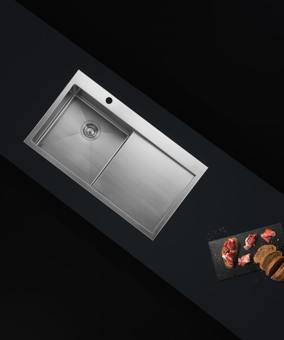 – Fregadero de una cubeta de acero inoxidable AISI 304 18/10