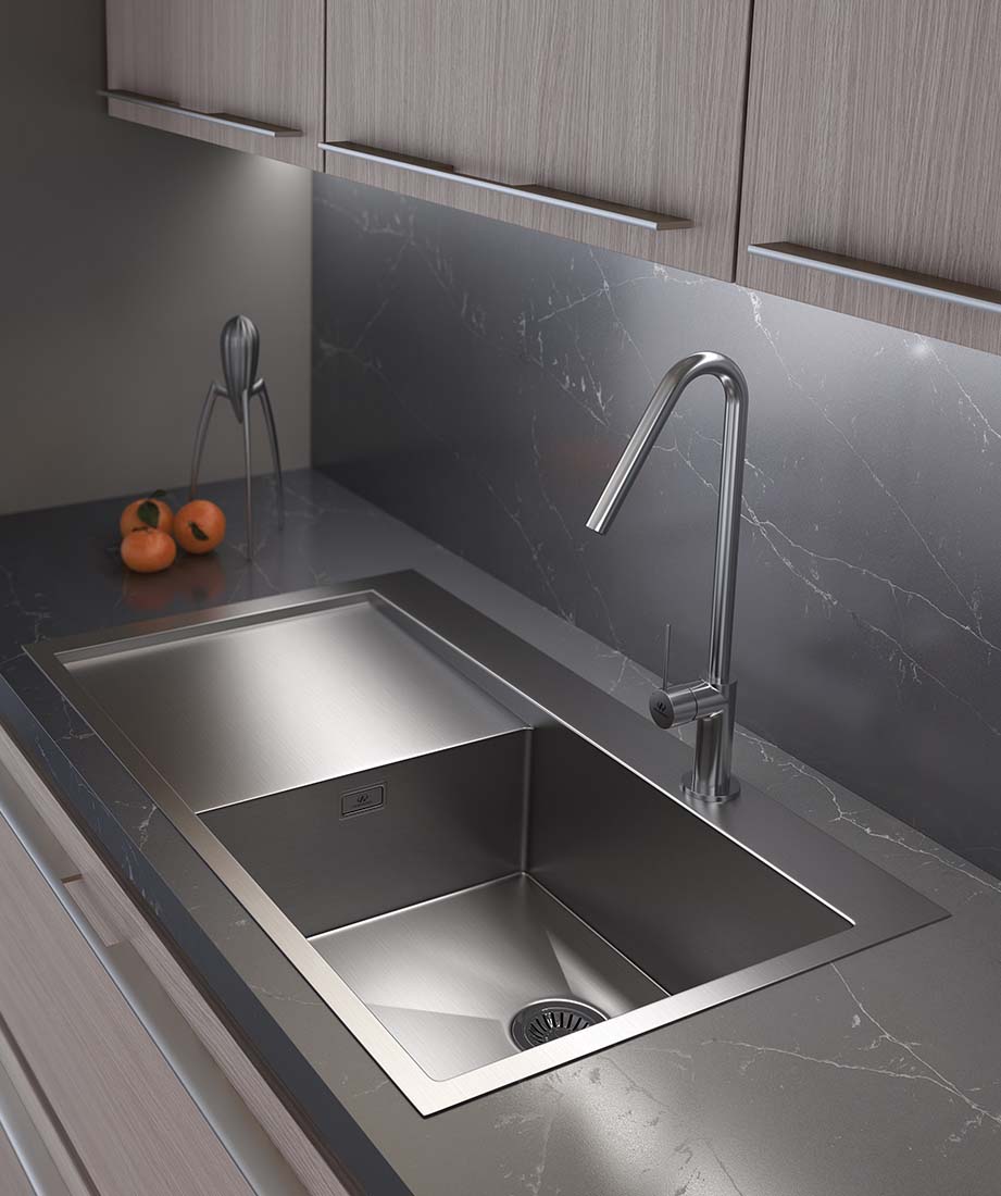 – Fregadero de una cubeta con escurridor izquierda de acero inoxidable AISI 304 18/10