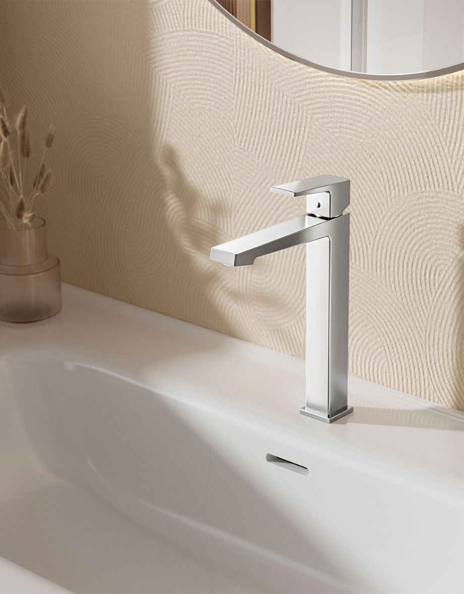 – Cuerpo grifería en latón acabado cromo (PVD)
